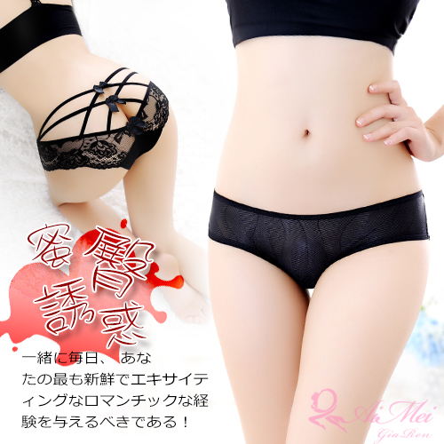 蜜臀誘惑!交叉細帶鏤空蝴蝶結三角褲﹝黑﹞