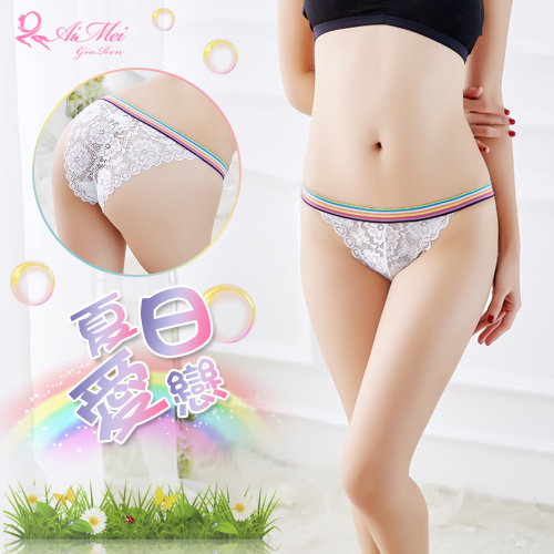 夏日愛戀!彩紅腰帶拼接蕾絲三角褲﹝白﹞