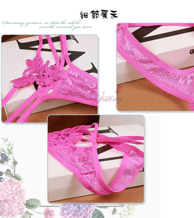 ►您現在的位置:首頁>甜蜜舞動!蝴蝶雙飛彈力細帶花卉網紗美臀T字褲﹝粉﹞
