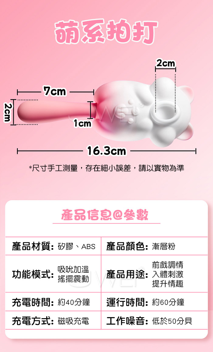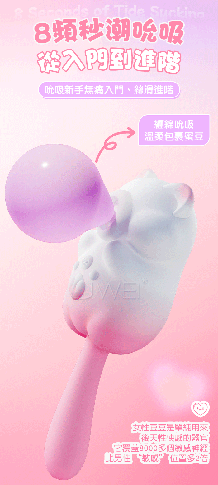 ►您現在的位置:首頁>萌系拍打.8頻秒朝吮吸+10頻尾部搖擺攪動加溫按摩器