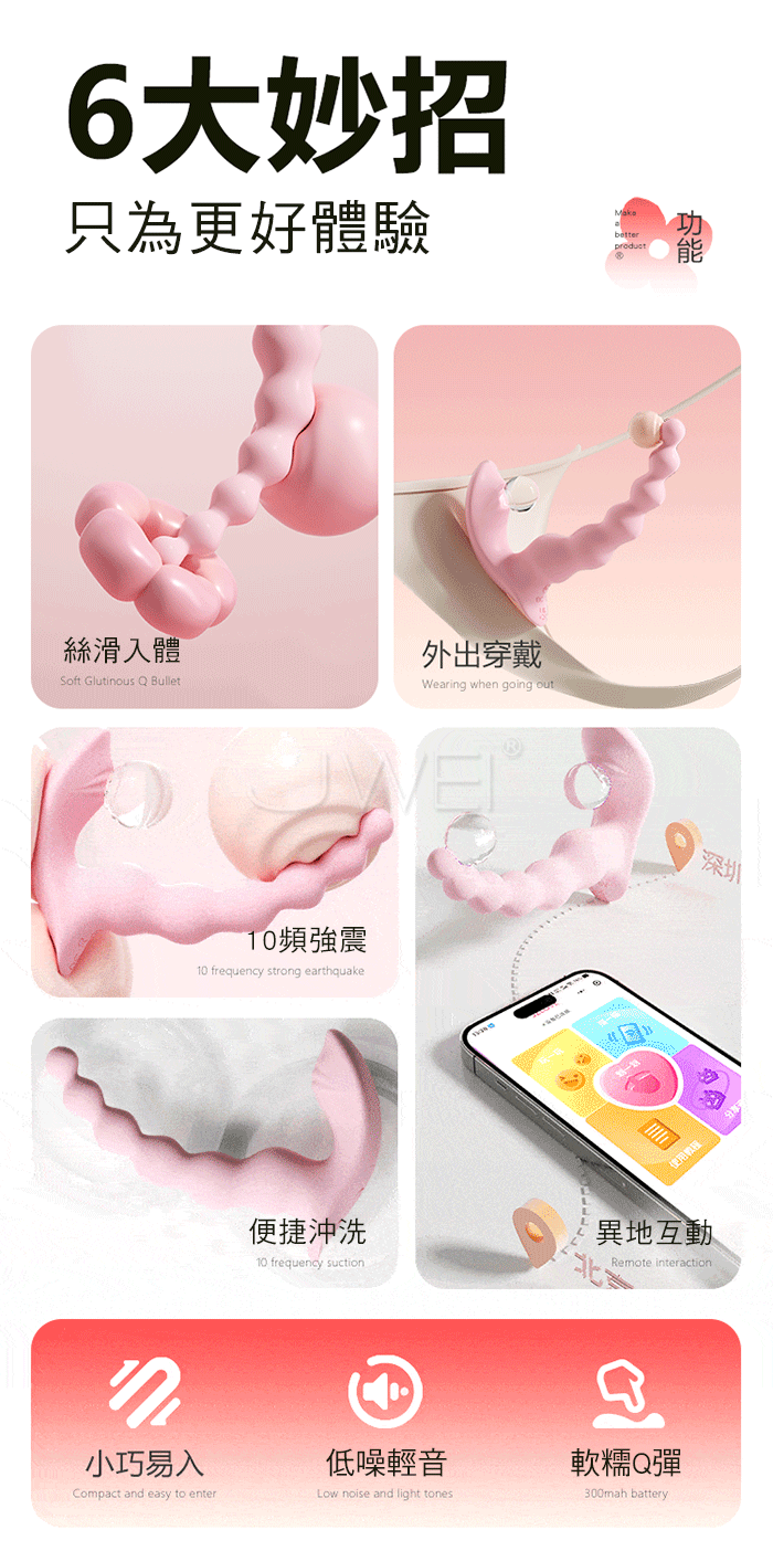 謎姬 MizzZee.糯糯桃心.10頻穿透強震穿戴拉珠摩擦 新手爽玩APP異地遙控後庭按摩器