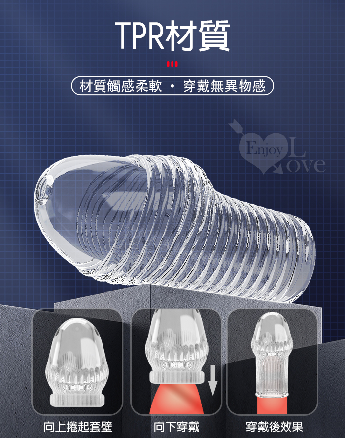 ►您現在的位置:首頁>派蒂菈 ‧ HOYTT 霍伊特 凹凸橫線螺紋刺激/隱身/持久/武裝強化老二造型套 - 頭部出精口設計