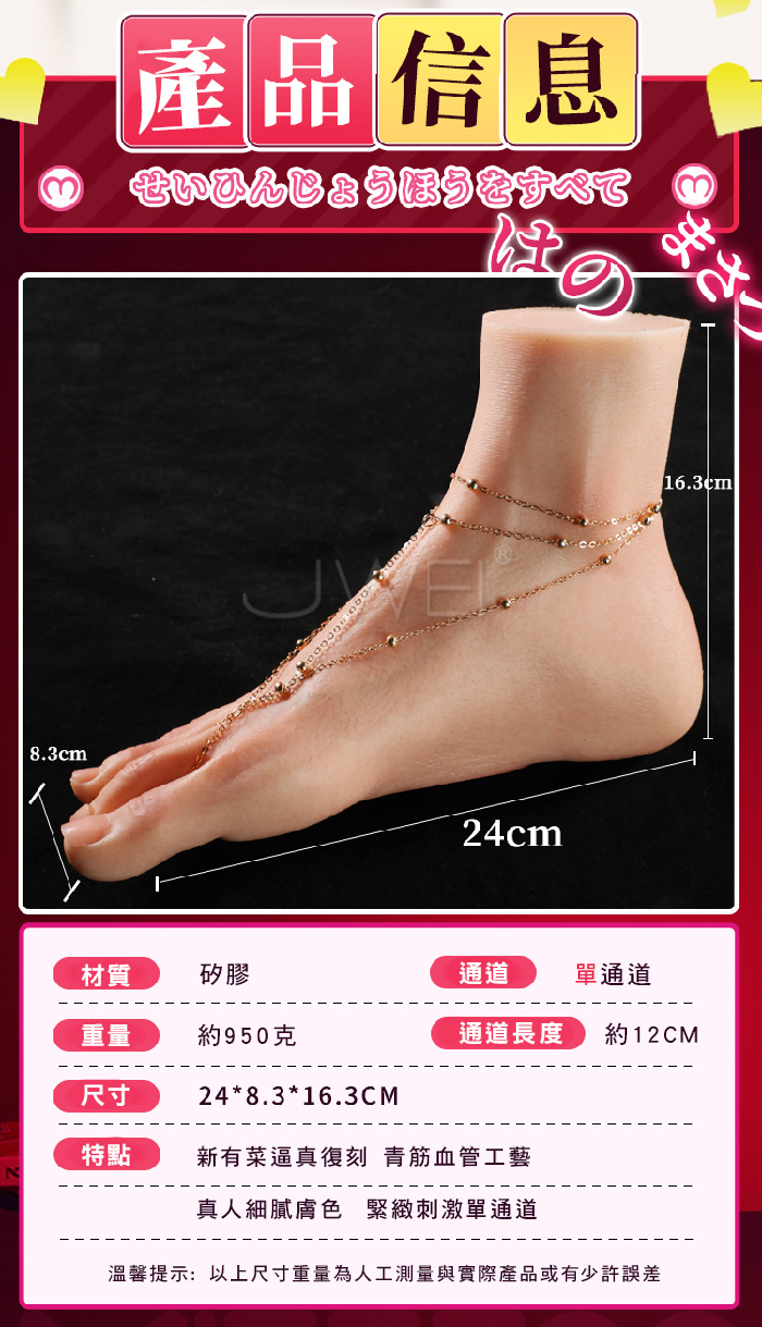 ►您現在的位置:首頁>橋本有菜 玉足.真美足 1:1仿真尺寸 青筋皮紋細節復刻 逼真陰部內置龍骨 雙色單穴自慰套【左腳】
