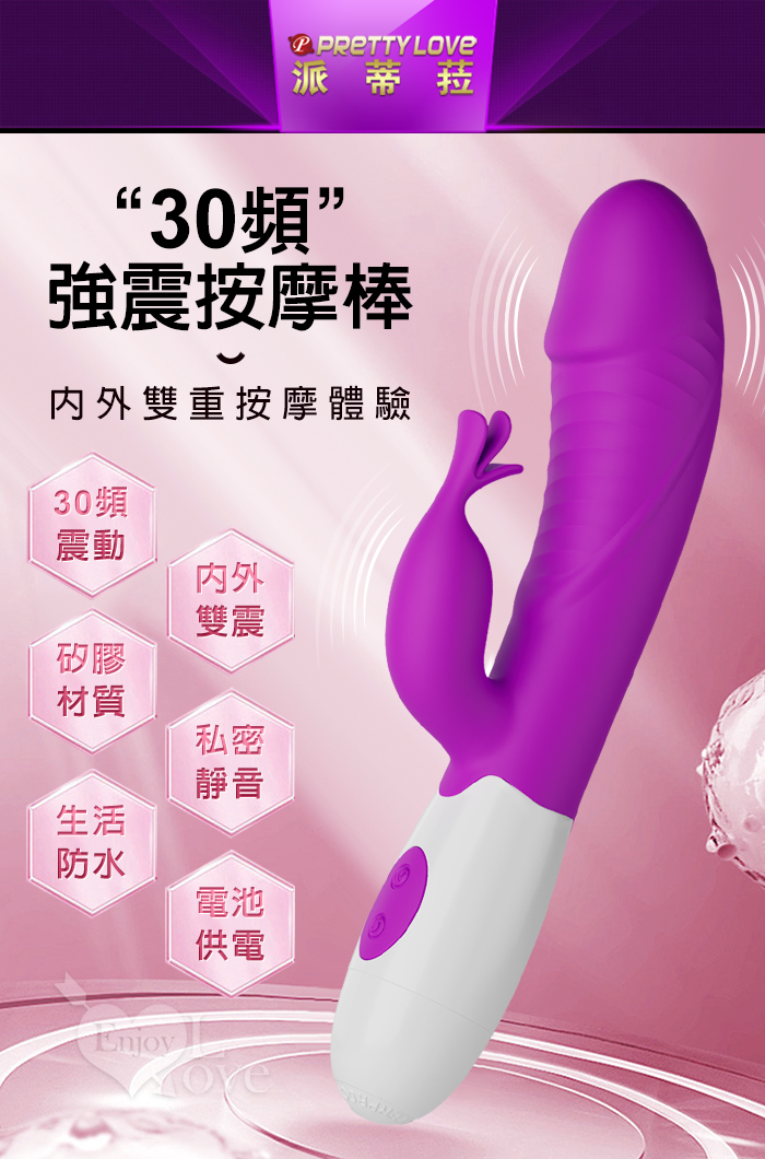 | PRETTY LOVE 派蒂菈 ‧ 頑皮兔 內外雙重30頻雙頭同震按摩棒-深紫
