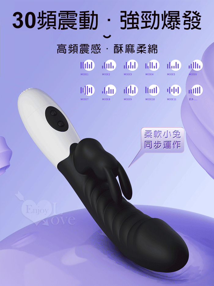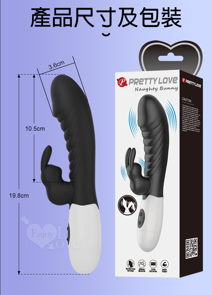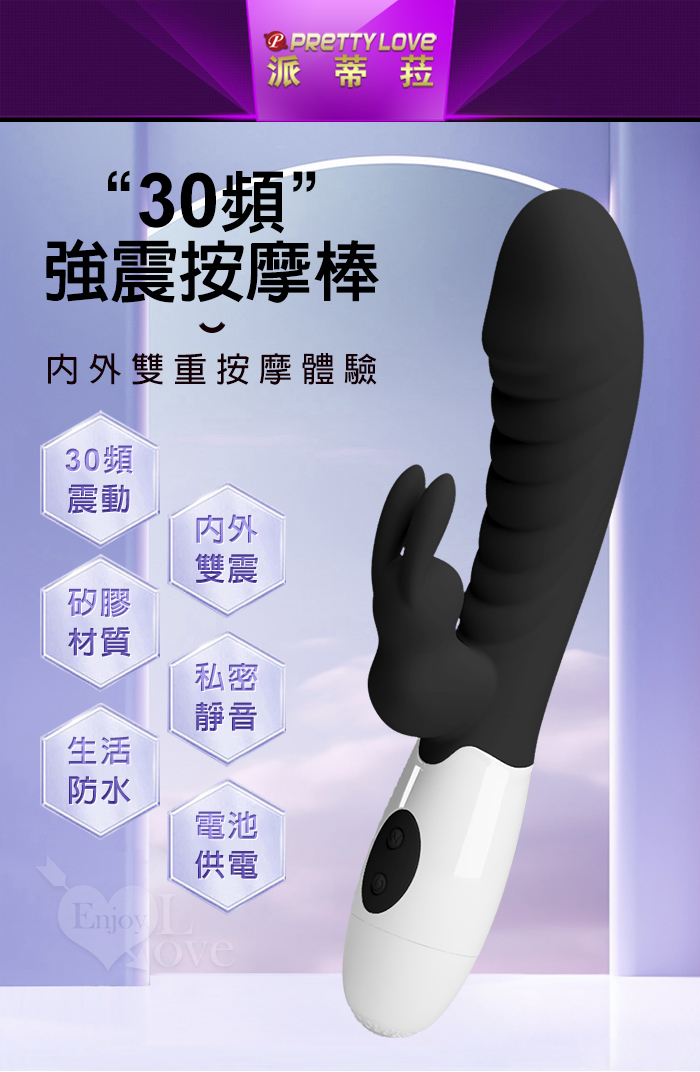 | PRETTY LOVE 派蒂菈 ‧ 頑皮兔 內外雙重30頻雙頭同震按摩棒-黝黑